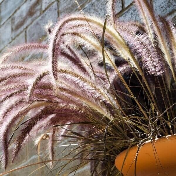 Purple Fountain Grass is a warm-season grass that will reach a finished height of 30 inches or more. They are good for landscaping or in combination planters if it is a large container. Purple Fountain Grass produce long, wheat-like blooms with purple seedheads that have a fuzzy, hairy feel to them. They are tender hardy and will survive in zones 9 and higher. They make a wonderful annual for the rest of us, as these plants are normally disease- and pest-free and remarkably easy to grow.